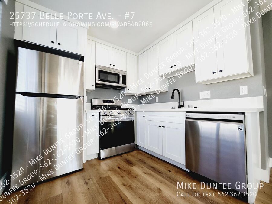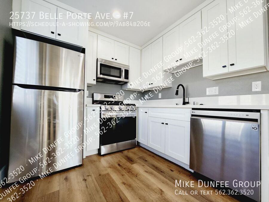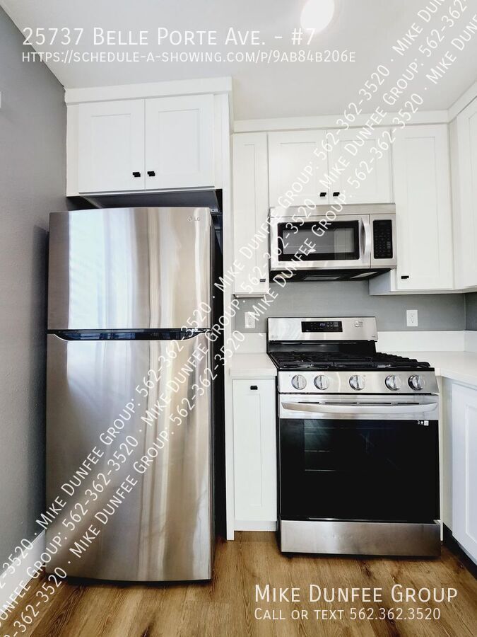 This newly renovated upstairs apartment at 25727 Belle Porte Ave in Harbor City features two bedrooms and one bathroom. It has been freshly painted and boasts new plank flooring throughout. The kitchen has new stainless steel appliances, including a gas range, refrigerator, dishwasher, and all-new cabinets. The bathroom has also been updated with new fixtures. You'll have one parking space, and the location offers convenient walking access to public transportation, restaurants, and shopping. The tenant pays the electricity and gas bill.