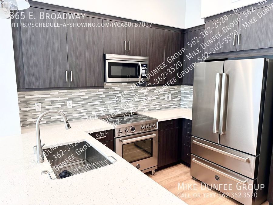 This modern smart townhouse, situated in a vibrant East Village Art District of downtown Long Beach, offers a sophisticated living experience across four thoughtfully designed stories. As a corner unit, it boasts enhanced privacy and abundant natural light. Inside, you'll find two well-appointed bedrooms and 2.5 bathrooms, complemented by a spacious living room that seamlessly flows into a contemporary kitchen. The kitchen is a chef's dream, featuring sleek marble countertops, and stainless steel appliances including a Bertazzoni induction range oven, built-in microwave, dishwasher, and a French door refrigerator.